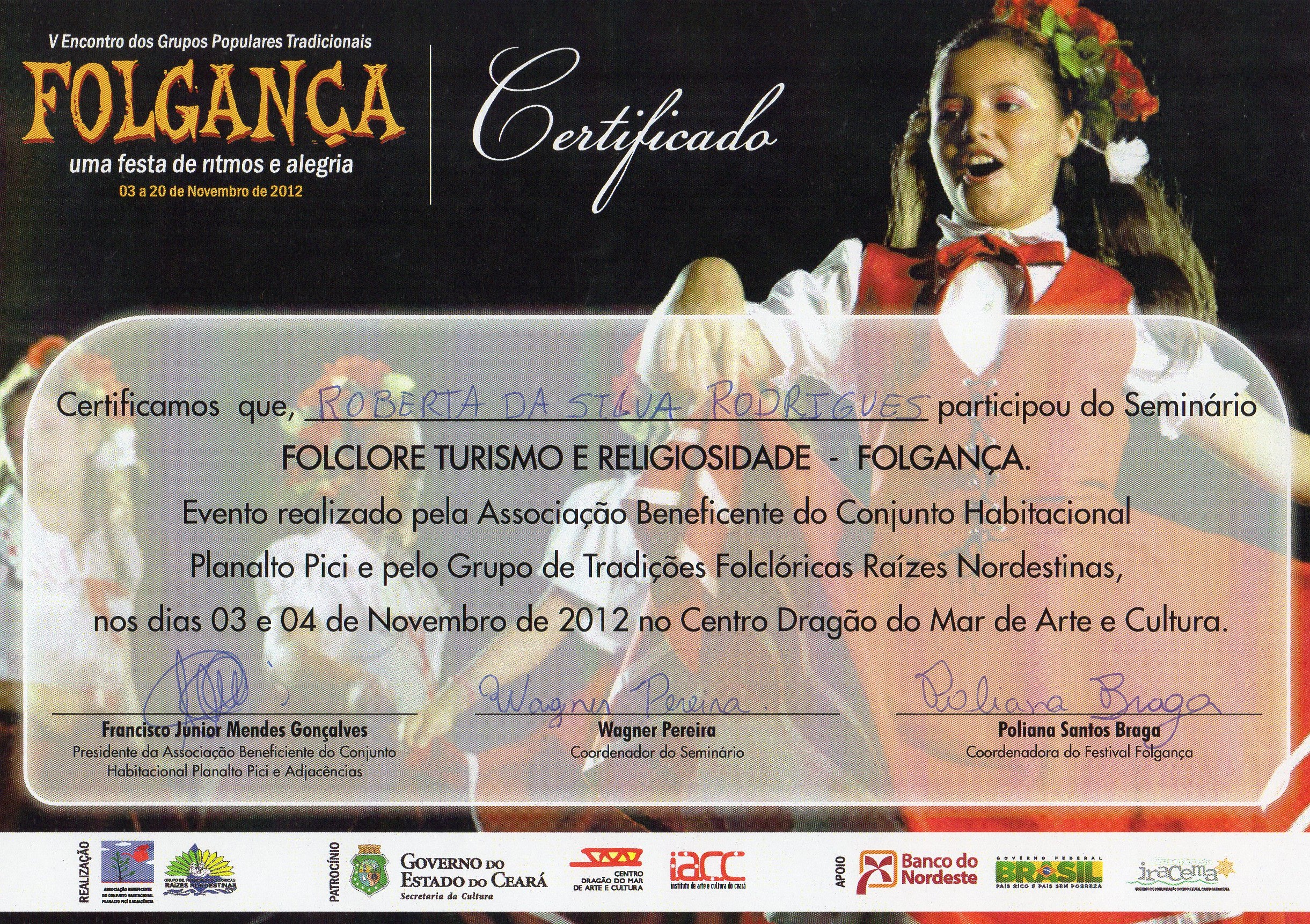 Presidente da Associação Canto da Jandaia, Estudante de Gestão Ambiental, que atua também na área da Cultura como produtora Cultural, Dançarina, Maquiadora.Vídeos
