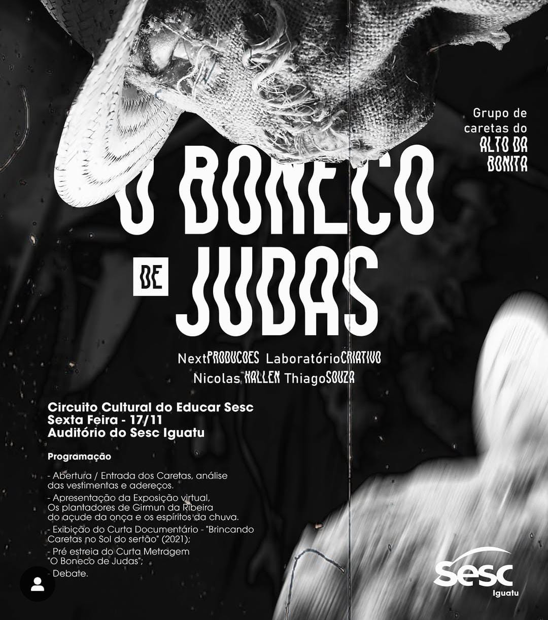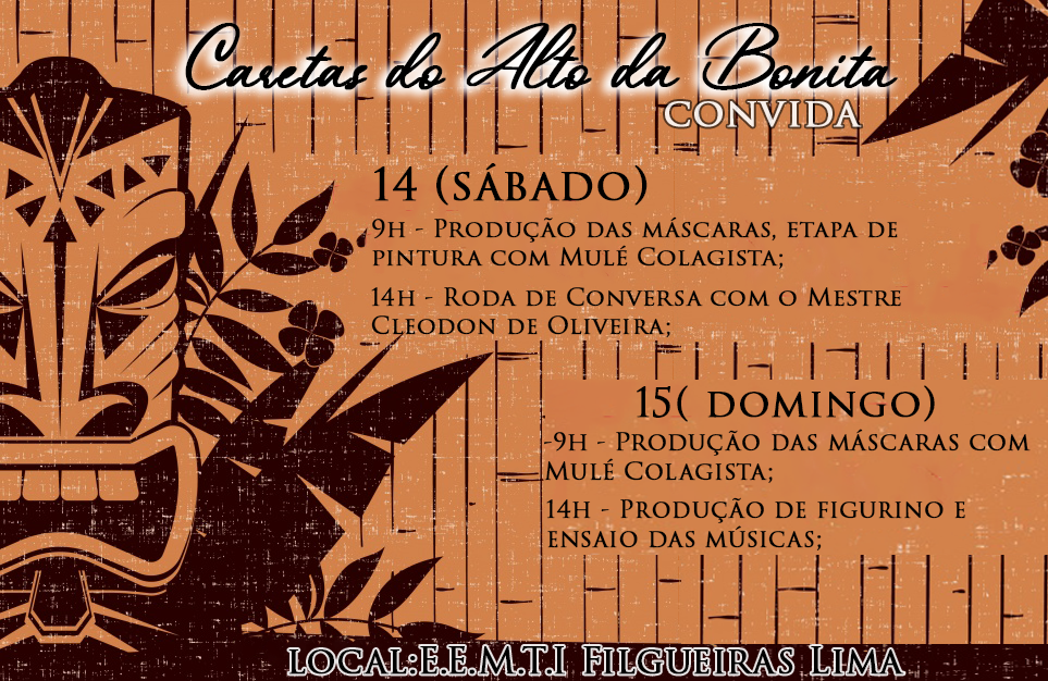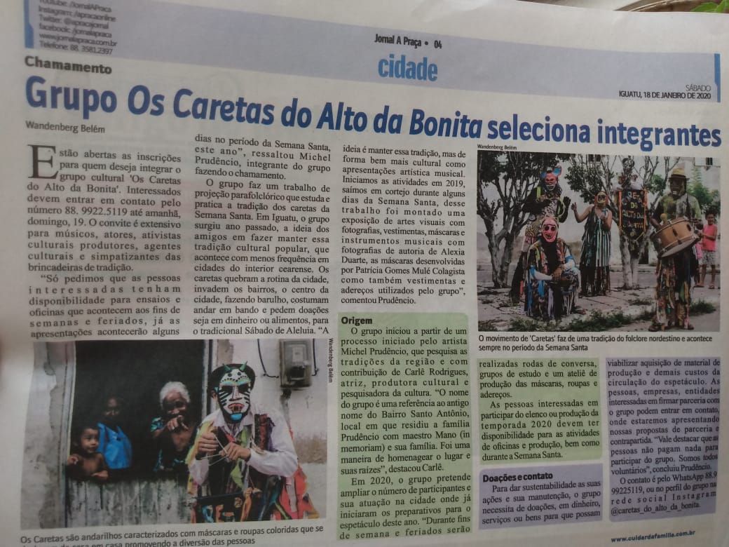 Caretas do Alto da Bonita — História, Resistência e Tradição do Sertão CearenseO Coletivo de Cultura Popular Caretas do Alto da Bonita surgiu em 2019, no bairro Santo Antônio — conhecido antigamente como Alto da Bonita, em Iguatu, Ceará. A iniciativa nasceu do desejo profundo de preservar e reinventar uma das expressões mais marcantes da cultura sertaneja: a brincadeira dos Caretas de Judas, tradicionalmente realizada durante a Semana Santa. À frente da criação do grupo está o artista popular, historiador e pesquisador Michel Prudencio, que há anos se dedica ao estudo das manifestações de Caretas no Ceará e à valorização das culturas populares como patrimônio imaterial do povo.