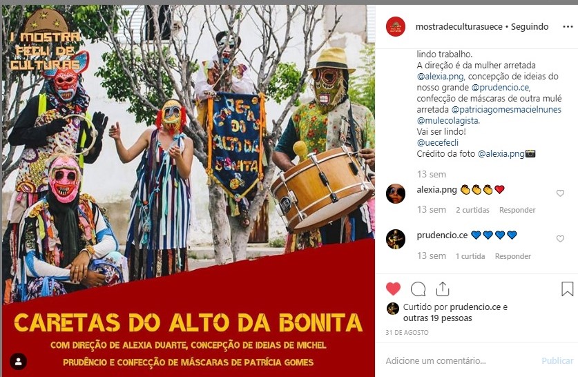 Assim, o Coletivo Caretas do Alto da Bonita segue vivo, transformando o antigo Alto da Bonita em um símbolo da cultura popular cearense, onde a memória dos Caretas de Judas encontra novos rostos, novas vozes e novas histórias mantendo acesa a chama do riso, da crítica, da brincadeira e da ancestralidade.