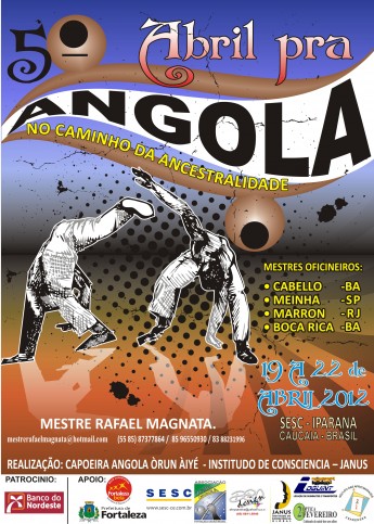 Realizamos, desde 2007, o evento cultural "Abril Pra Angola", que oferece atividades de treinamento, capacitação, formação, estudos e vivências de Capoeira Angola (ancestralidade, filosofia e prática). Já foram 12 edições realizadas, sendo a próxima (em fase de organização) a ser celebrada em 2025. Sua última realização contou com a parceria e apoio da ADUFC, Maracatu Solar, Teatro Universitário Paschoal Carlos Magno (UFC), Omì Ateliê de Dança, Coletivo Areia (Dança-UFC) e Mukambu de Cultura.