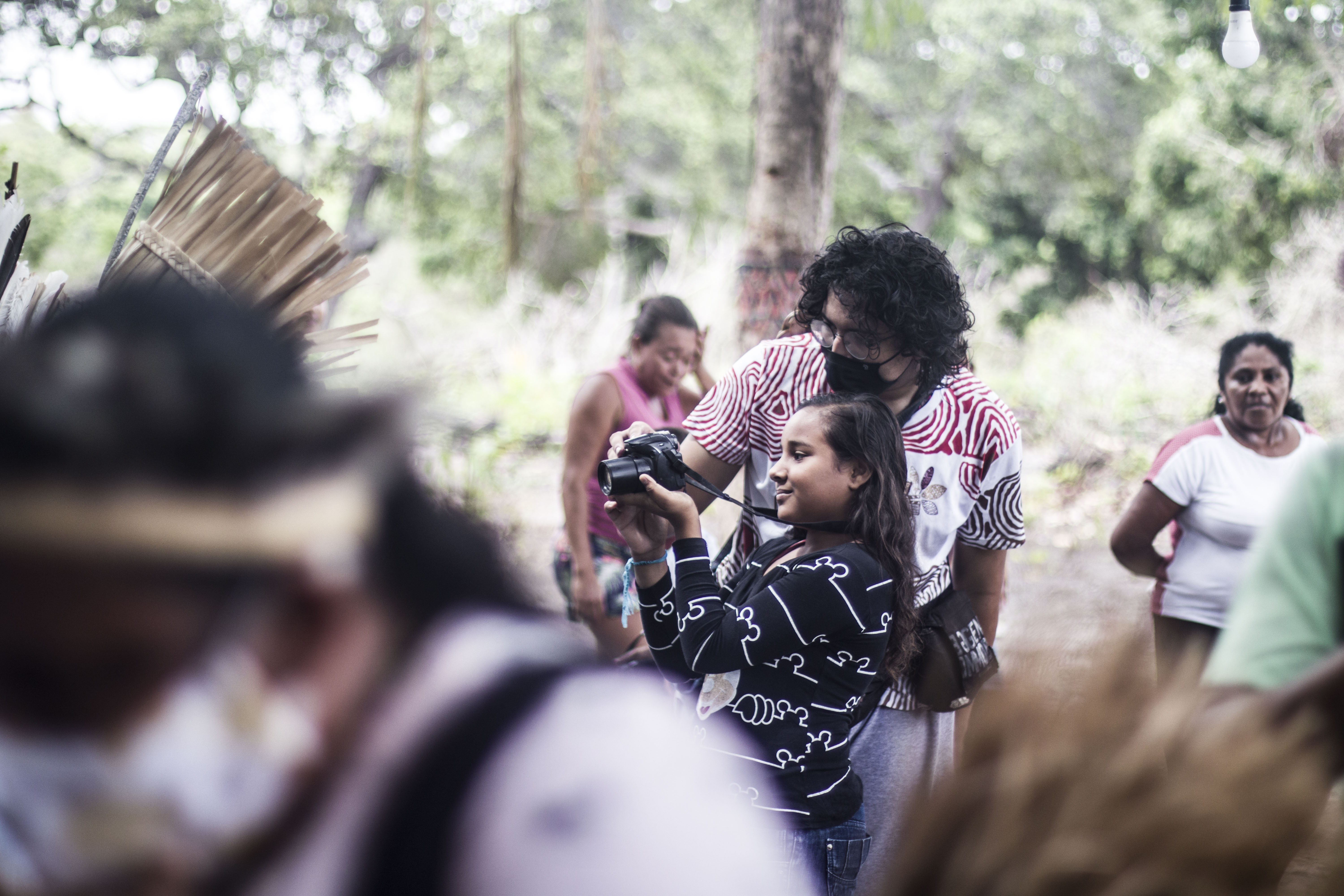 Também realizamos oficinas de audiovisual para os jovens indígenas , principalmente perto de algum evento na aldeia, : batismos , casamentos, festas ou reuniões.
